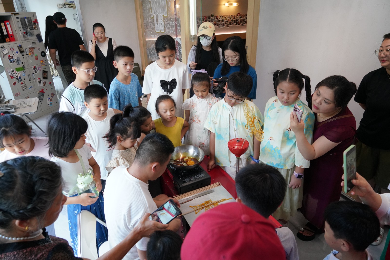 非遗糖画课程吸引了众多孩子的目光,传承人刘慎帅现场授课,他手把手指导孩子们熬糖、勾勒、塑形,一个个栩栩如生的糖画作品在孩子们手中诞生,让大家在趣味体验中感受非遗文化的独特魅力。