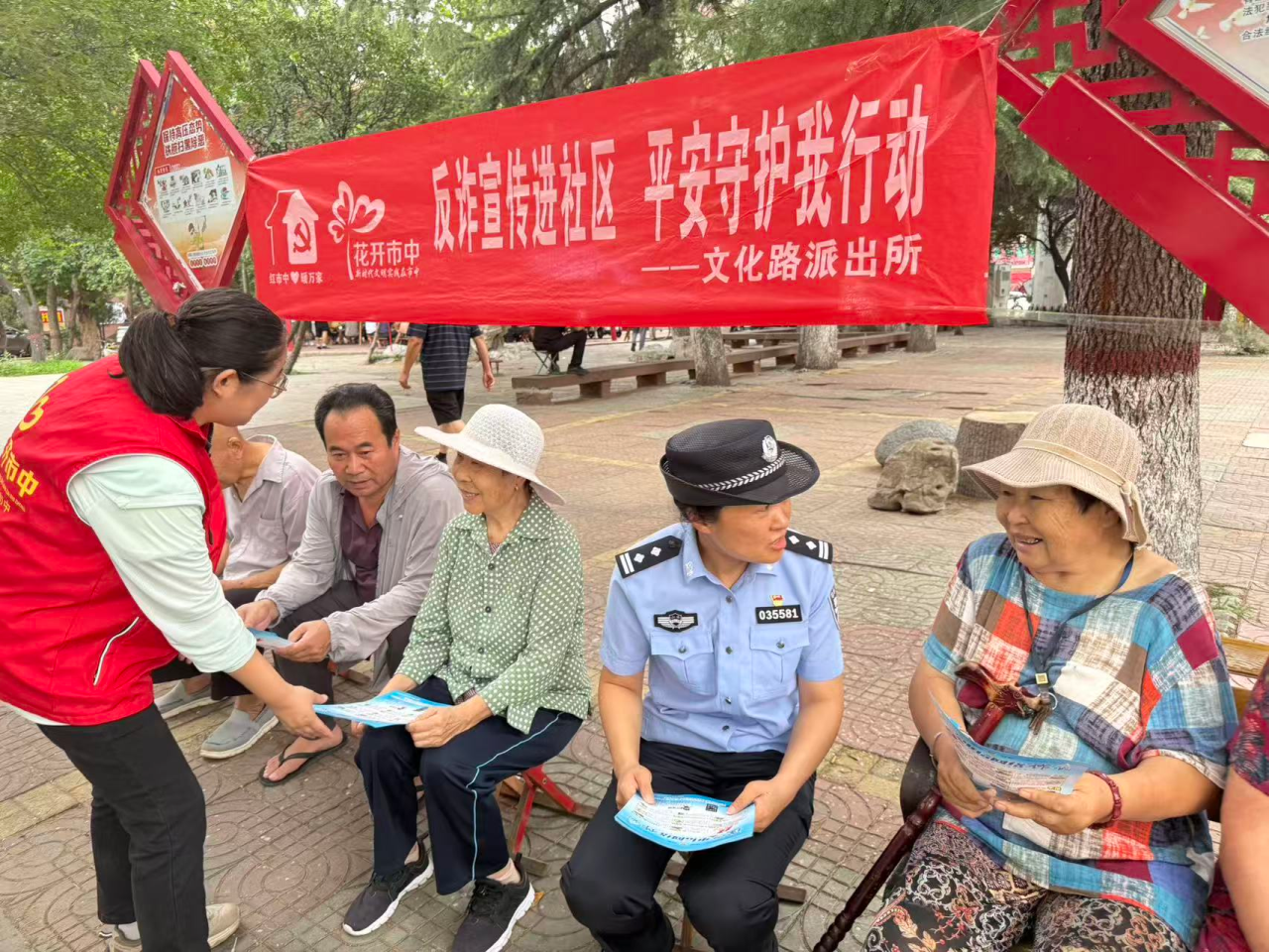 为提升社区居民防诈骗意识,筑牢反诈安全防线,近日,文化路街道立新社区新时代文明实践站联合文化路派出所开展 “反诈宣传进万家 平安守护你我他” 反诈宣传主题活动。