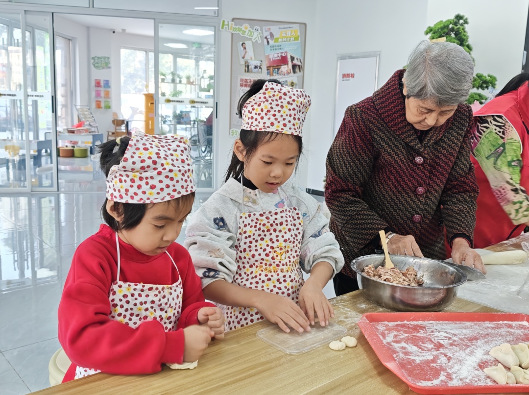 讲座后“家庭教育包饺子活动”开展。社区工作人员提前备好食材、厨具,志愿者和家长指导孩子完成擀皮、填馅、捏合等操作,传授包饺子技巧。饺子煮制完成后,社区工作人员与家庭代表组成“文化爱心小分队,将饺子分装打包,分组前往辖区独居老年人家中,送去热腾腾的饺子与问候,同时了解老人生活需求、健康状况,传递“邻里和睦、尊老爱老”文化风尚。
