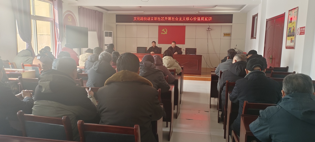 为深化社会主义核心价值观培育践行,切实将社会主义核心价值观理念融入社区治理与邻里日常,2月6日,文化路街道立新社区开展社会主义核心价值观宣传宣讲活动,让社会主义核心价值观真正渗透到社区的每个角落,50余人参与宣讲。