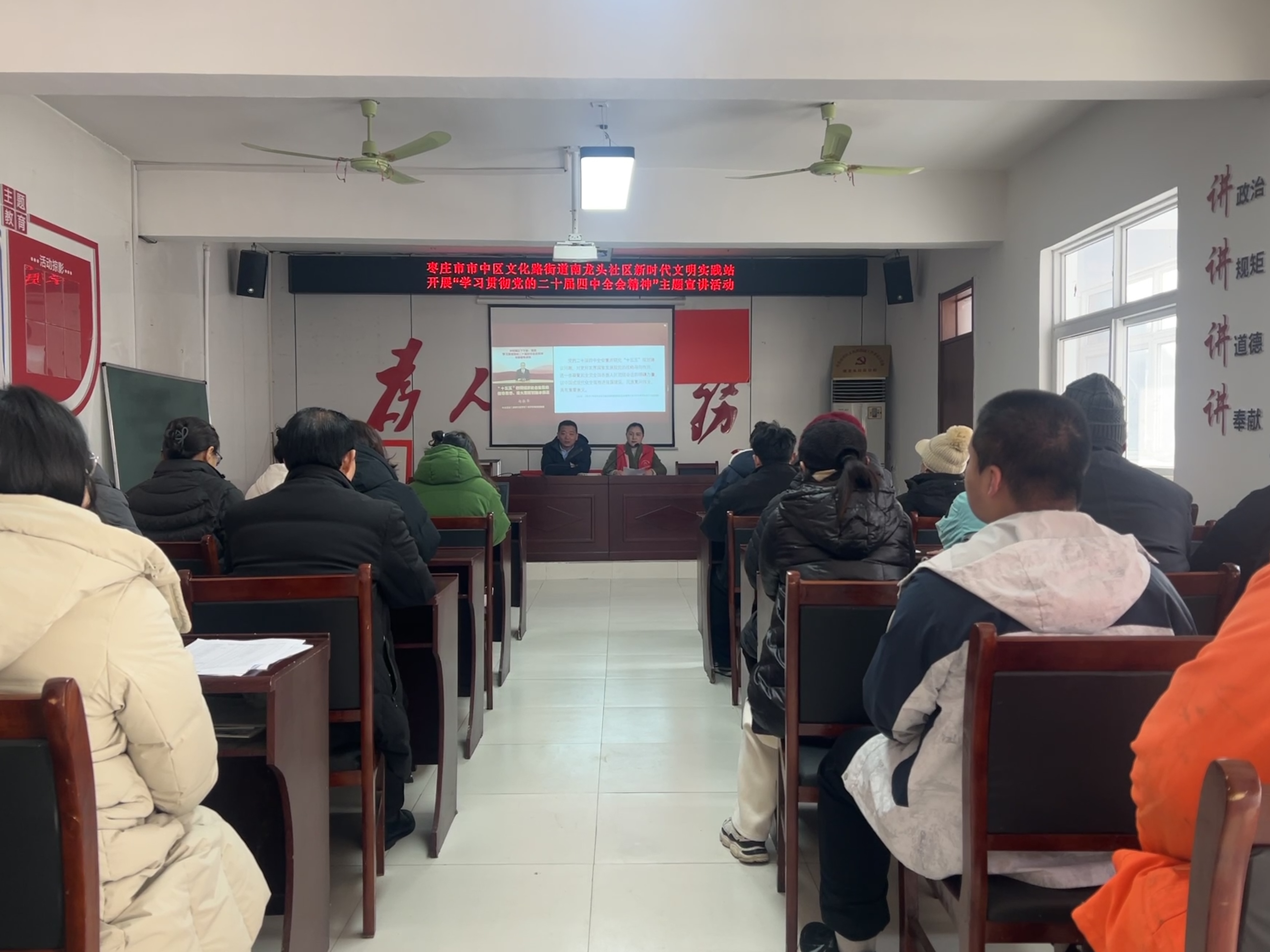 为进一步深入学习贯彻党的二十届四中全会精神,2月24日,文化路街道南龙头社区新时代文明实践站组织开展了“学习贯彻党的二十届四中全会精神”主题宣讲活动,本次活动共吸引32名党员群众积极参与。