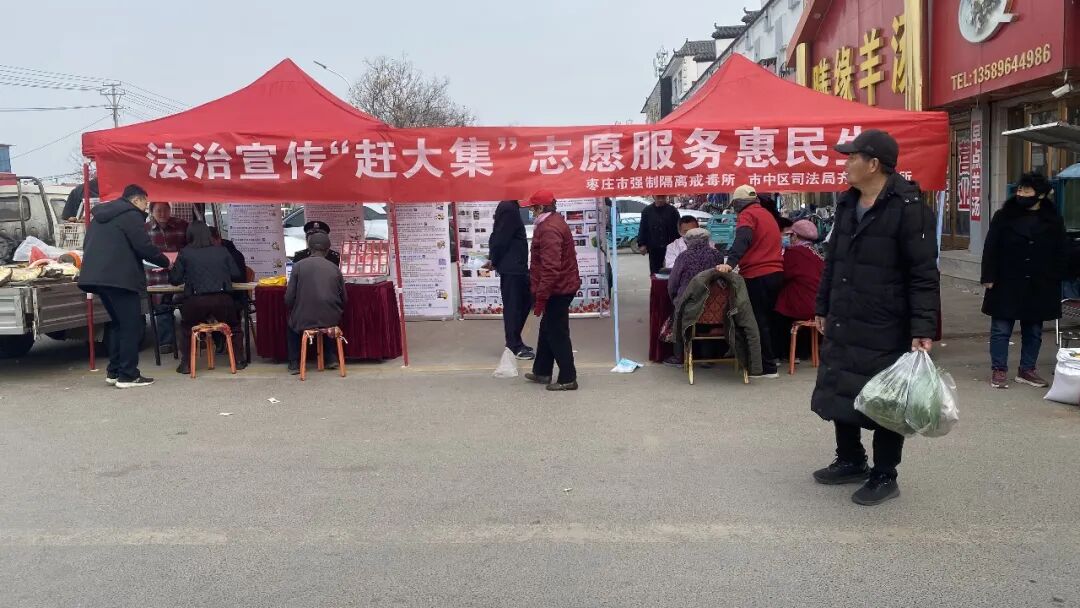 为深入推进禁吸戒毒法治宣传社会化延伸,推动专业戒毒力量精准服务基层群众,深化新时代文明实践志愿服务。3月17日,枣庄市强制隔离戒毒所联合市中区齐村镇司法所,走进当地齐村大集开展“法治宣传‘赶大集’ 志愿服务惠民生”开展文明实践活动,将禁毒宣传、健康义诊、心理咨询与法律援助一站式送到群众身边,让普法与文明理念融入烟火气,以志愿服务践行文明使命。