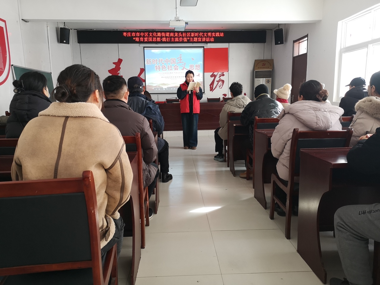 为培育和践行社会主义核心价值观,推动新时代精神文明建设融入社区生活, 1月6日,文化路街道南龙头社区在社区新时代文明实践站组织开展“培育爱国思想•践行主流价值”主题宣讲活动。