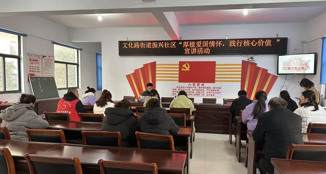 为进一步践行社会主义核心价值观,引导社区居民厚植爱国主义情怀,传承红色基因。1月23日,文化路街道振兴社区新时代文明实践站开展“厚植家国情怀,践行核心价值观”主题宣讲活动。