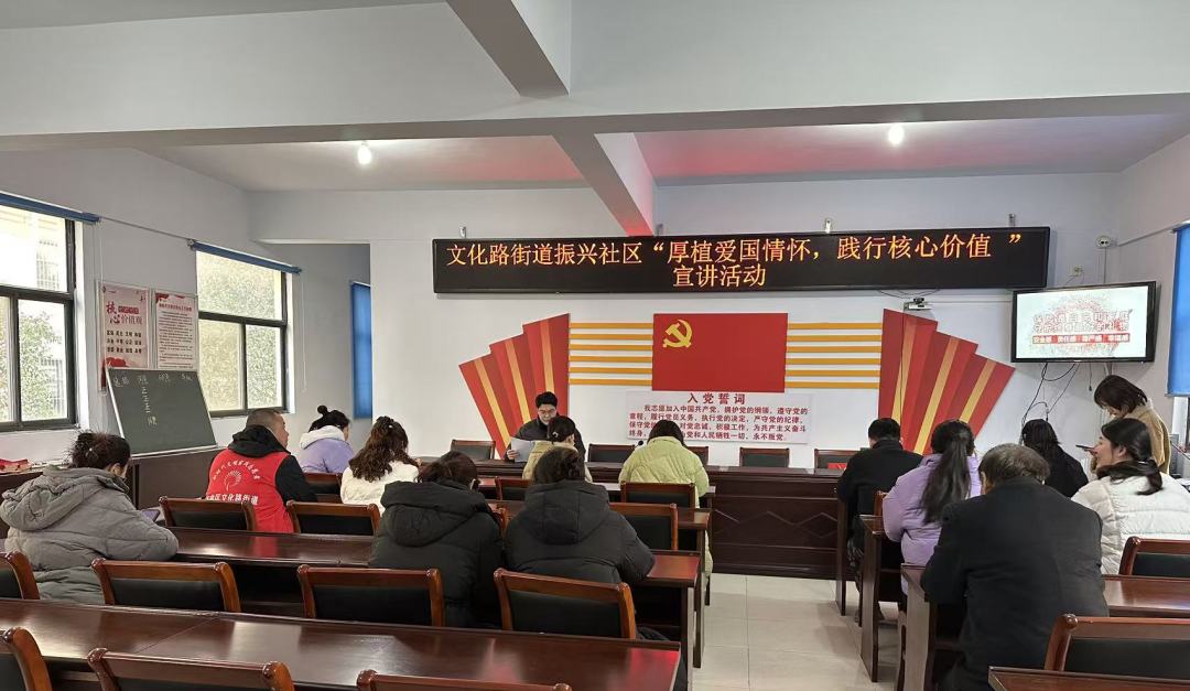 为进一步践行社会主义核心价值观,引导社区居民厚植爱国主义情怀,传承红色基因。1月23日,文化路街道振兴社区新时代文明实践站开展“厚植家国情怀,践行核心价值观”主题宣讲活动,18人参与宣讲。